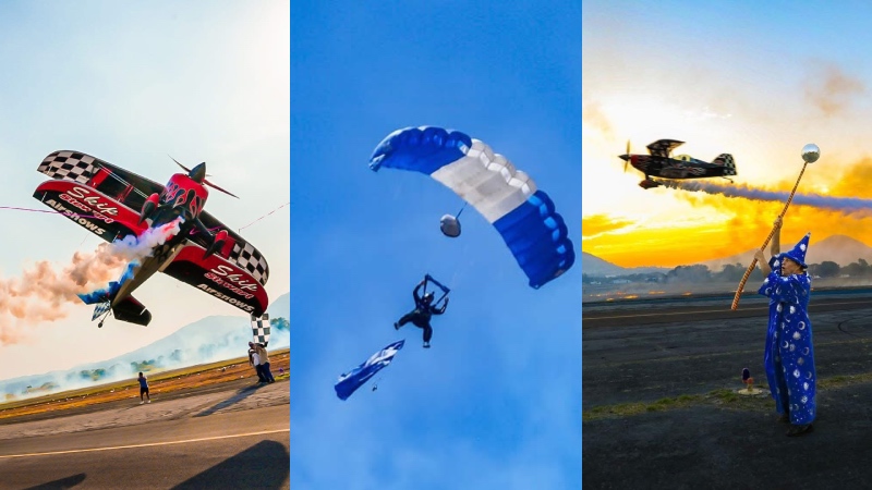 Entre los pilotos nacionales que participarán se encuentran Carlos Dárdano, Paco Sol, Tito Gutiérrez, Fernando Viaud y la Fuerza Aérea Salvadoreña. El espectáculo abrirá ambos días con un show de paracaidismo a cargo de Tuto Wright, seguido por un impactante show de Wingsuit, protagonizado por una piloto conocida como la “mujer pájaro”.