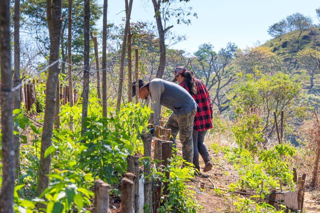 “Aplicamos bokashi cada cambio de estación. Y con eso lo que hacemos es tratar de mantener la colonia de microorganismos que hay en el suelo. En suelos tan fértiles como los que tenemos nosotros en El Salvador, que son de carácter volcánico, la parte de la fertilización en sí no es necesaria porque la mayor parte de los nutrientes están en el suelo, solo que están encapsulados  y no están biodisponible, digamos. Entonces, cuando tú trabajas con agricultura orgánica o agricultura regenerativa, al meter esos cócteles de microorganismos en el suelo, son ellos los que se encargan de lograr que haya una biodisponibilidad de estos alimentos”, explica.