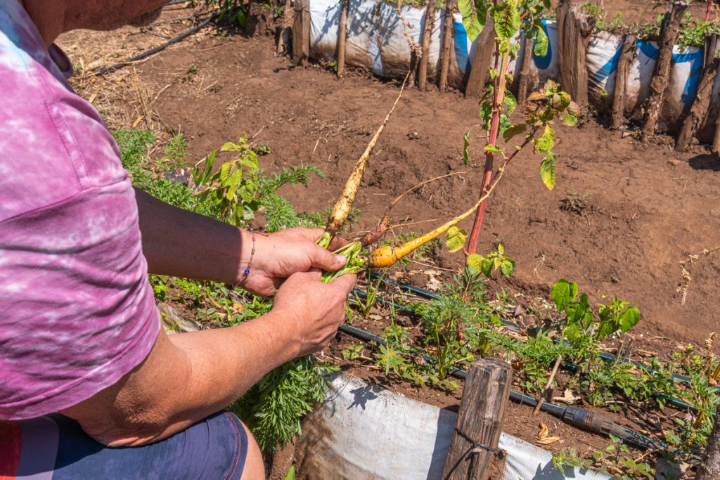 En su huerto también trabaja con la técnica de permacultura que no es más que un sistema de diseño agrícola que busca crear sistemas sostenibles y regenerativos que trabajen en armonía con la naturaleza. “Nosotros colocamos pasto seco encima de la tierra y la función del pasto es mantener húmeda la tierra y evita el crecimiento de maleza”, asegura.