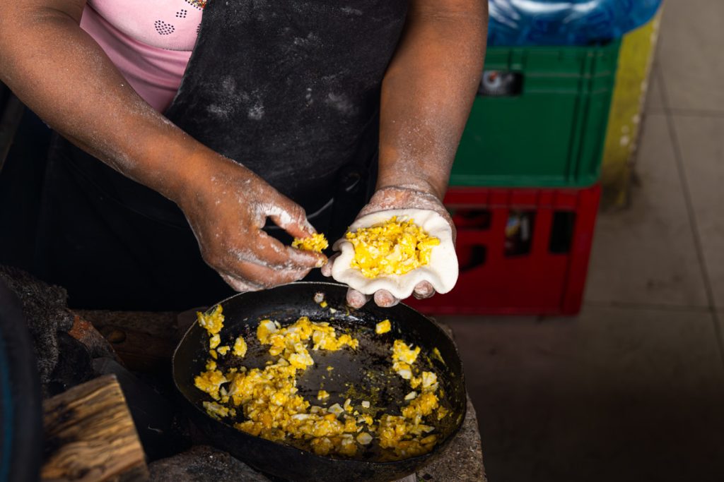 Las mini pupusas se han vuelto muy populares en esta zona del país. Son pequeñas, prácticas, pero con todo el sabor salvadoreño concentrado en un solo bocado. Lo mejor de todo es que, pupuseras como doña María, no usan aceite, sino harina de arroz para palmear. Eso convierte este platillo en una opción dietética para aquellos que no incluyen grasa en su alimentación.