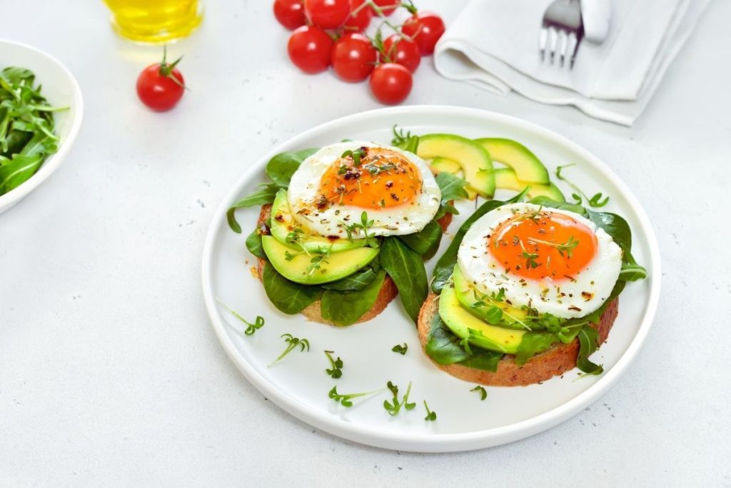 Un primer ejemplo de desayuno energético y saciante son los huevos. Los huevos destacan por su alto poder de saciedad. Para facilitar su consumo por la mañana, se pueden dejar cocidos la noche anterior o preparar varios para la semana, ya que se conservan bien con cáscara durante varios días. Dos huevos cocidos acompañados de aguacate y tomates cherry constituyen un desayuno sencillo que mantiene la energía durante horas. Si no se dispone de aguacate, un chorrito de aceite de oliva cumple una función similar, ya que aporta grasa saludable que, junto con la proteína del huevo, prolonga la saciedad.