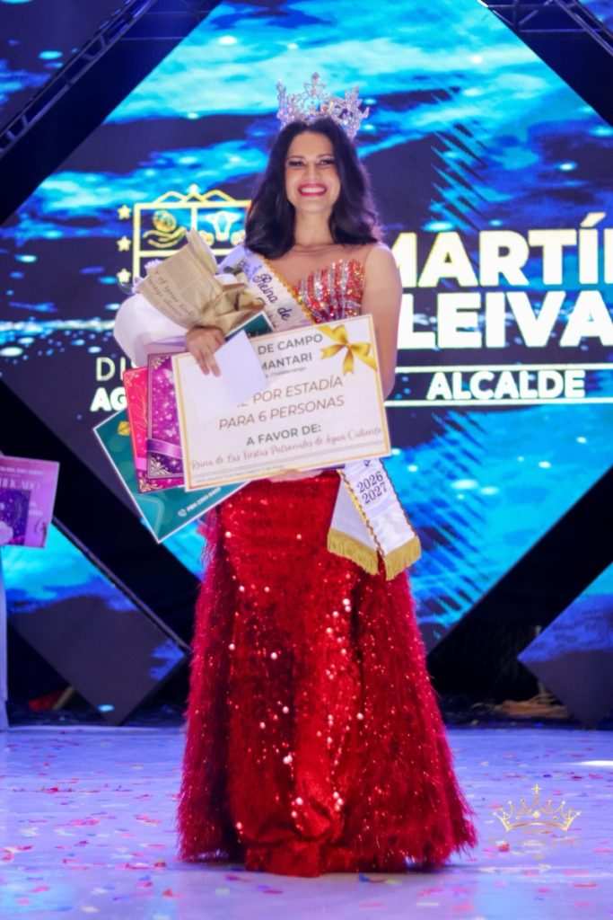 La señorita Viky Guevara, quien representó a un sector del pueblo, resultó reina de las fiestas patronales de Agua Caliente 2026.