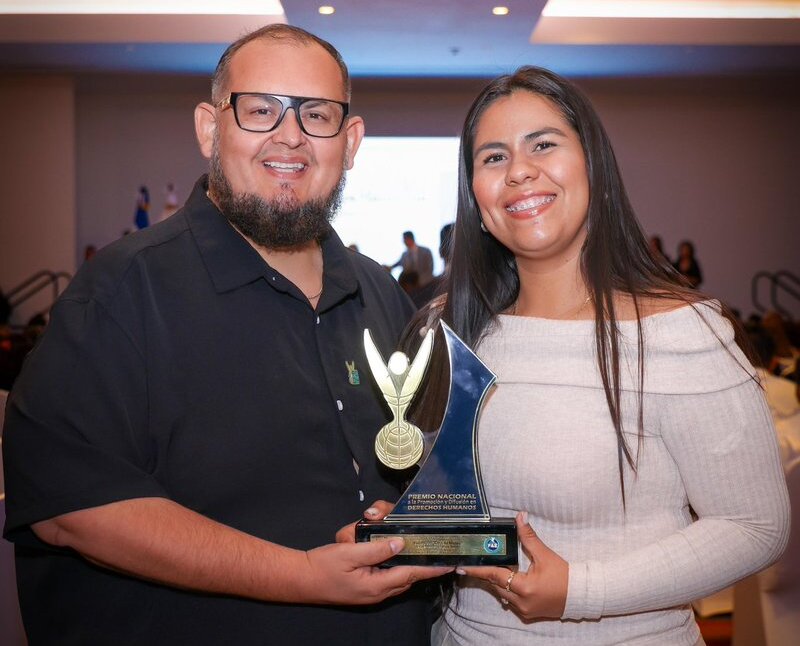 El Premio Nacional a la Promoción y Difusión en Derechos Humanos fue entregado por la Procuraduría para la Defensa de los Derechos Humanos (PDDH). El creador de contenido y su prometida lo recibieron con mucha emoción y alegría.