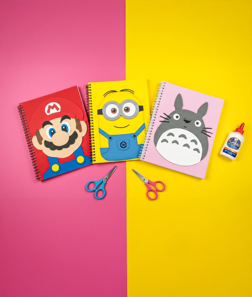 Hoy en día es difícil ignorar el uso de los emojis: están por todas partes y son especialmente populares entre los niños. Por eso, pueden ser una excelente opción para decorar los cuadernos escolares. Imprime distintos emojis o dibújalos en cartulina y colócalos sobre la carátula del cuaderno o libro, que previamente puedes forrar con plástico reutilizable. Otra alternativa es usar stickers de sus personajes preferidos para crear un diseño tipo mosaico, único y a gusto de cada niño. No olvides optar por papel reciclado para que los materiales utilizados sean más amigables con el cuidado del medioambiente.