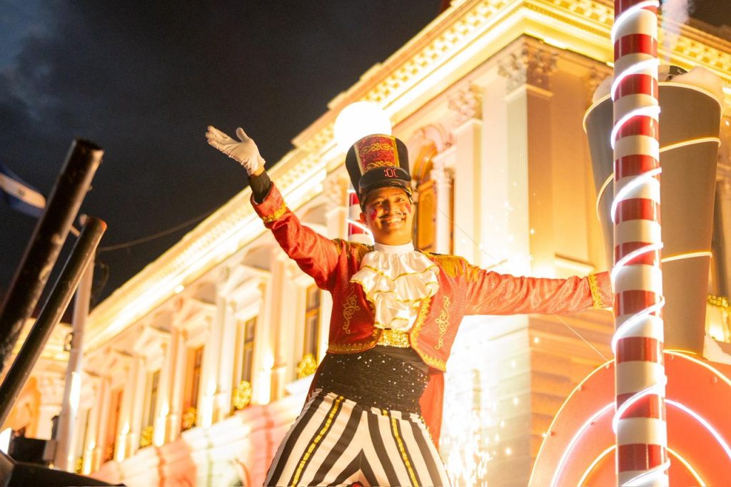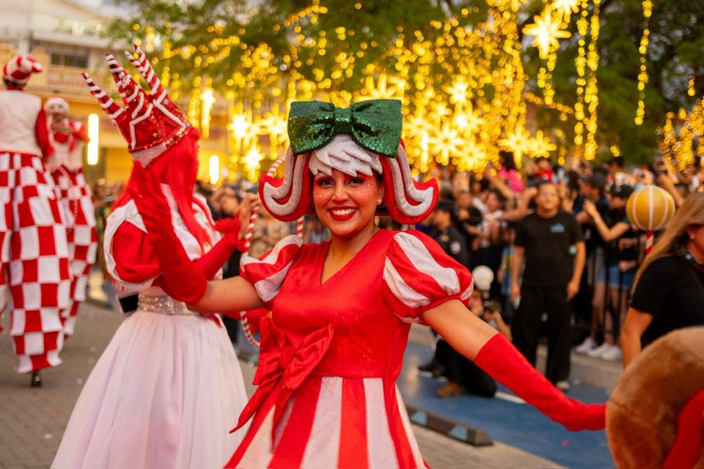 Desde horas de la tarde, familias completas se congregaron a lo largo del recorrido para disfrutar del paso de enormes figuras inflables, inspiradas en personajes y motivos festivos, que avanzaron por las principales calles del corazón histórico de la ciudad. El desfile estuvo acompañado de música, animación y presentaciones artísticas.