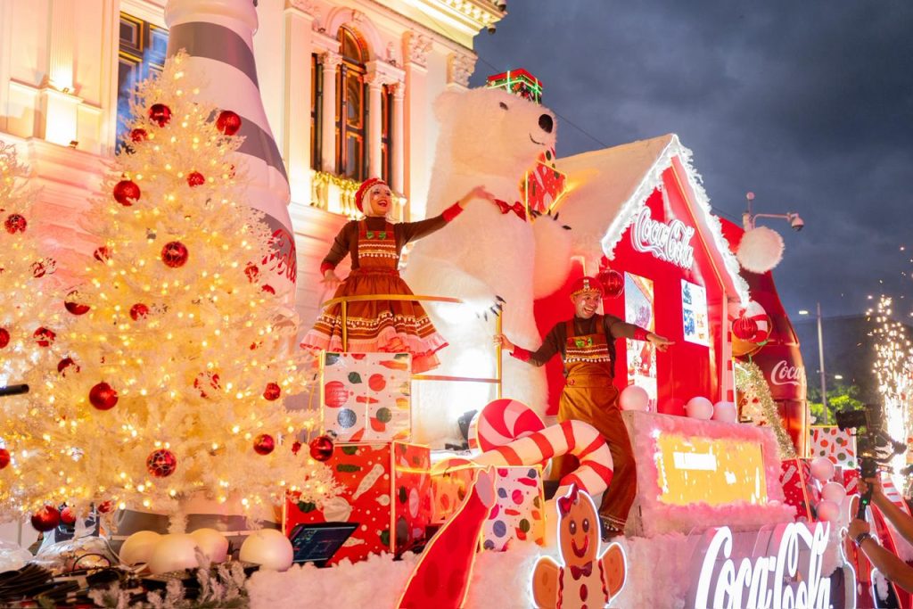 Santa Claus, renos, osos polares, galletas de jengibre, payasos, cascanueces y muchos más fueron las figuras gigantes que desfilaron.