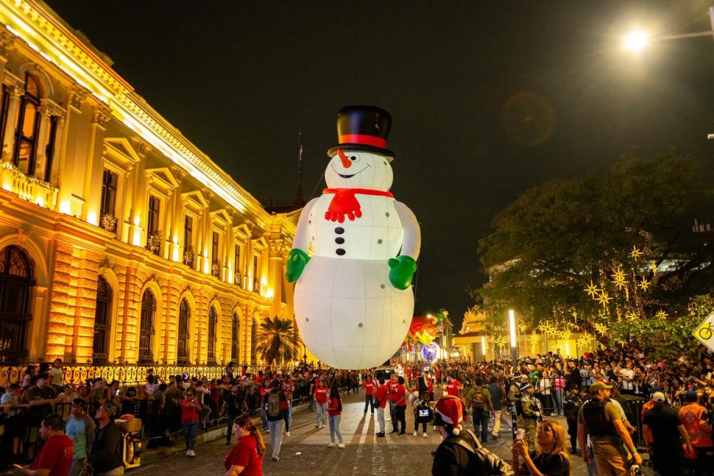 El Centro Histórico de San Salvador se convirtió en un escenario de alegría y color con la realización del Desfile de Globos Gigantes, una de las actividades más esperadas de la temporada navideña en la capital salvadoreña.