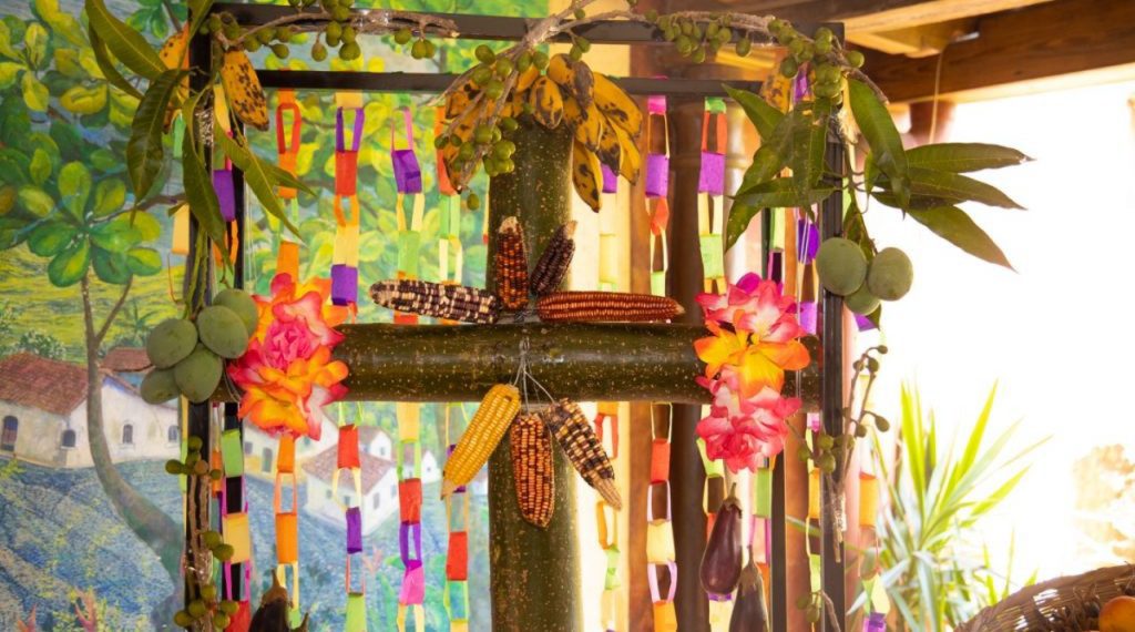 Es una tradición que fusiona la fe católica con la veneración indígena a la Madre Tierra, coincidiendo con el inicio de la temporada lluviosa. Consiste en adornar cruces con frutas y gallardetes, acompañadas de procesiones, danzas de historiantes y rezos.