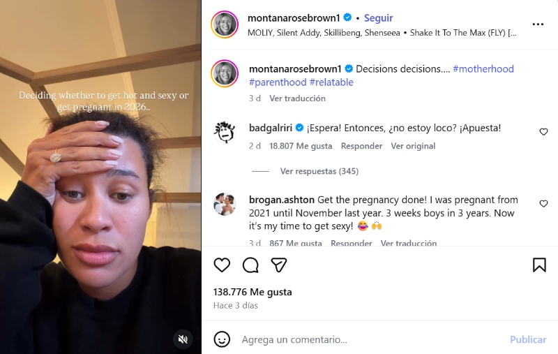 «Estoy decidiendo si ponerme sexy o quedar embarazada en 2026», decía el post de Montana. Rihanna respondió a la publicación con «¡Espera! Entonces, ¿no estoy loca? ¡Apostemos!». Como era de esperarse la respuesta de la barbadense no tardó en viralizarse y obtener cientos de respuestas de usuarios.