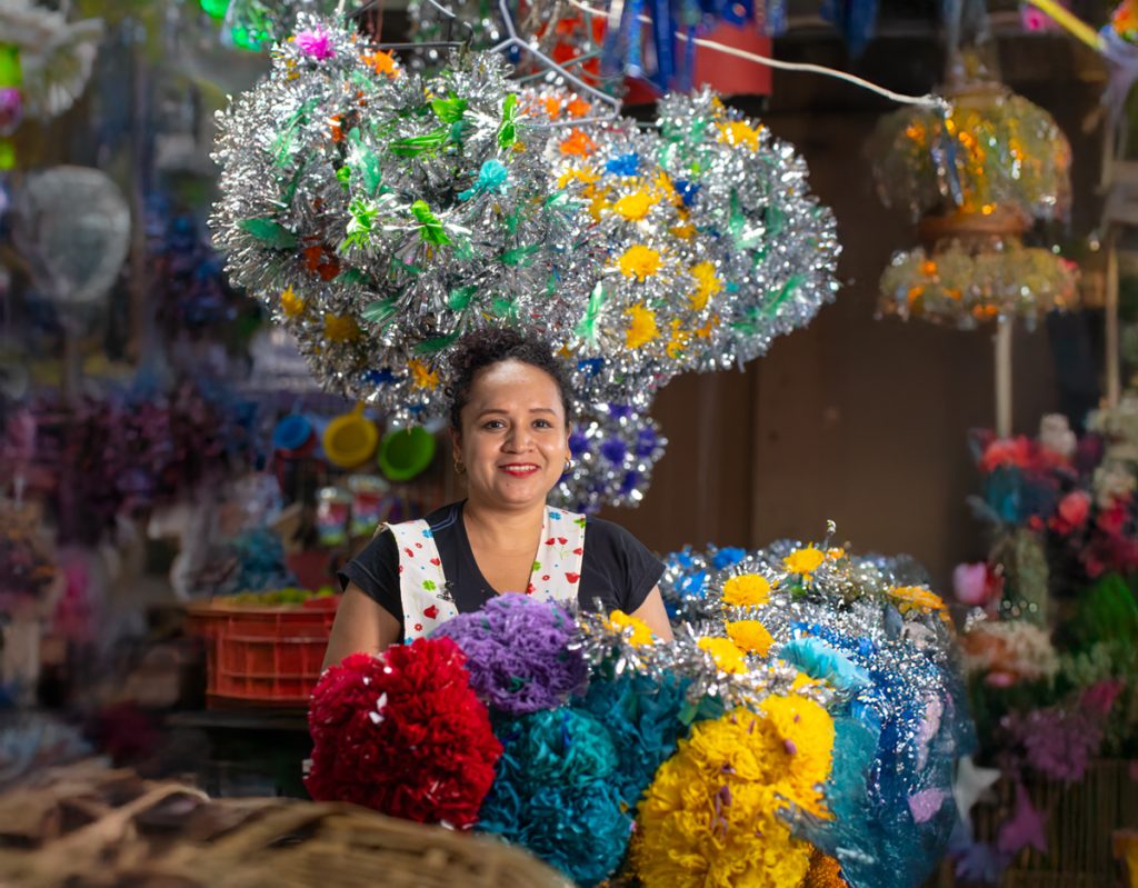 A metros de distancia de Yanira, los salvadoreños también encontrarán el local de Nubia Rodríguez, quien junto a su mamá ha sacado el negocio adelante, trabajando durante todo el año en la elaboración de las flores artesanales.