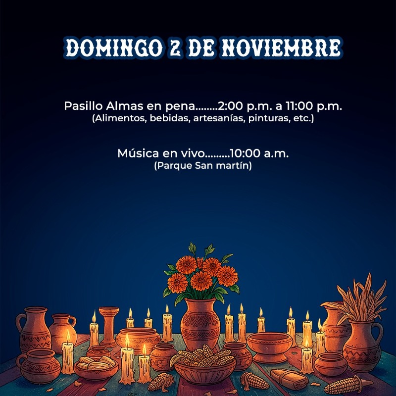 Bienvenida y presentación del Altar de Muertos en el parque San Martín, a las 6:00 p.m.